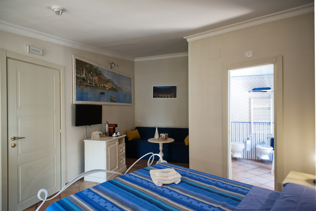 The LA PINTA Junior Suite features a double bedroom and private bathroom. It also has a sofa bed, making it particularly suitable for families with children, as well as for guests who want more space than a hotel room.