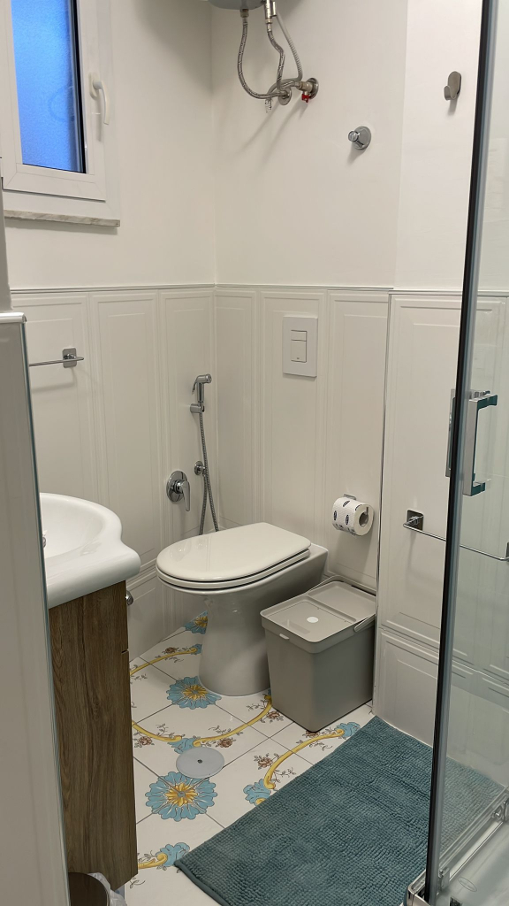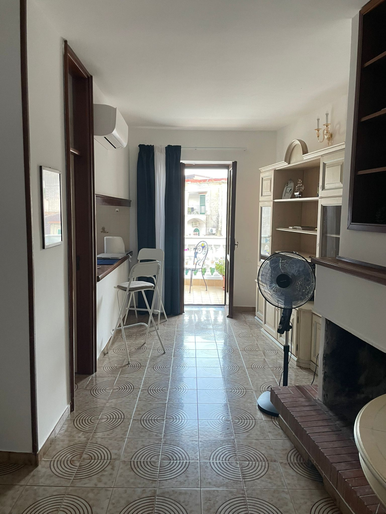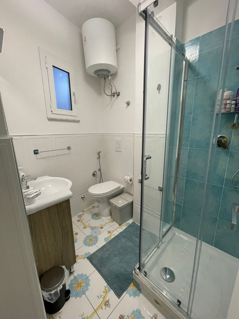 The ANGELICA apartment features a double bedroom with a private bathroom and a kitchenette, ideal for couples. It also has a balcony overlooking the seaside village.