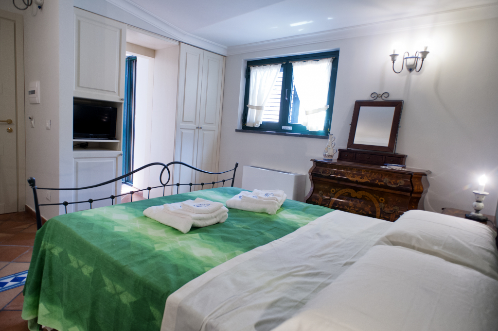 La Junior Suite LA SANTA MARIA è composta da una camera matrimoniale e bagno privato, ideale per le coppie, dispone di un balcone con vista sul borgo marinaro..